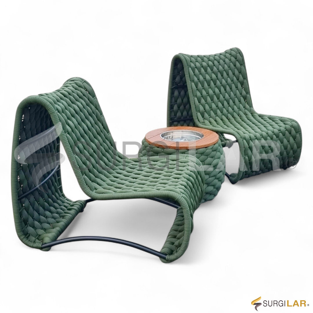 Inspirado em Medellín—Colômbia – cidade marcada pela transformação urbana, clima agradável, áreas verdes e design contemporâneo — este kit une estilo e personalidade. Produzido em trama tricô náutico na cor verde militar, traz um visual moderno e sofisticado. As poltronas oferecem conforto acolhedor, enquanto a mesa champanheira completa o conjunto com praticidade e elegância.