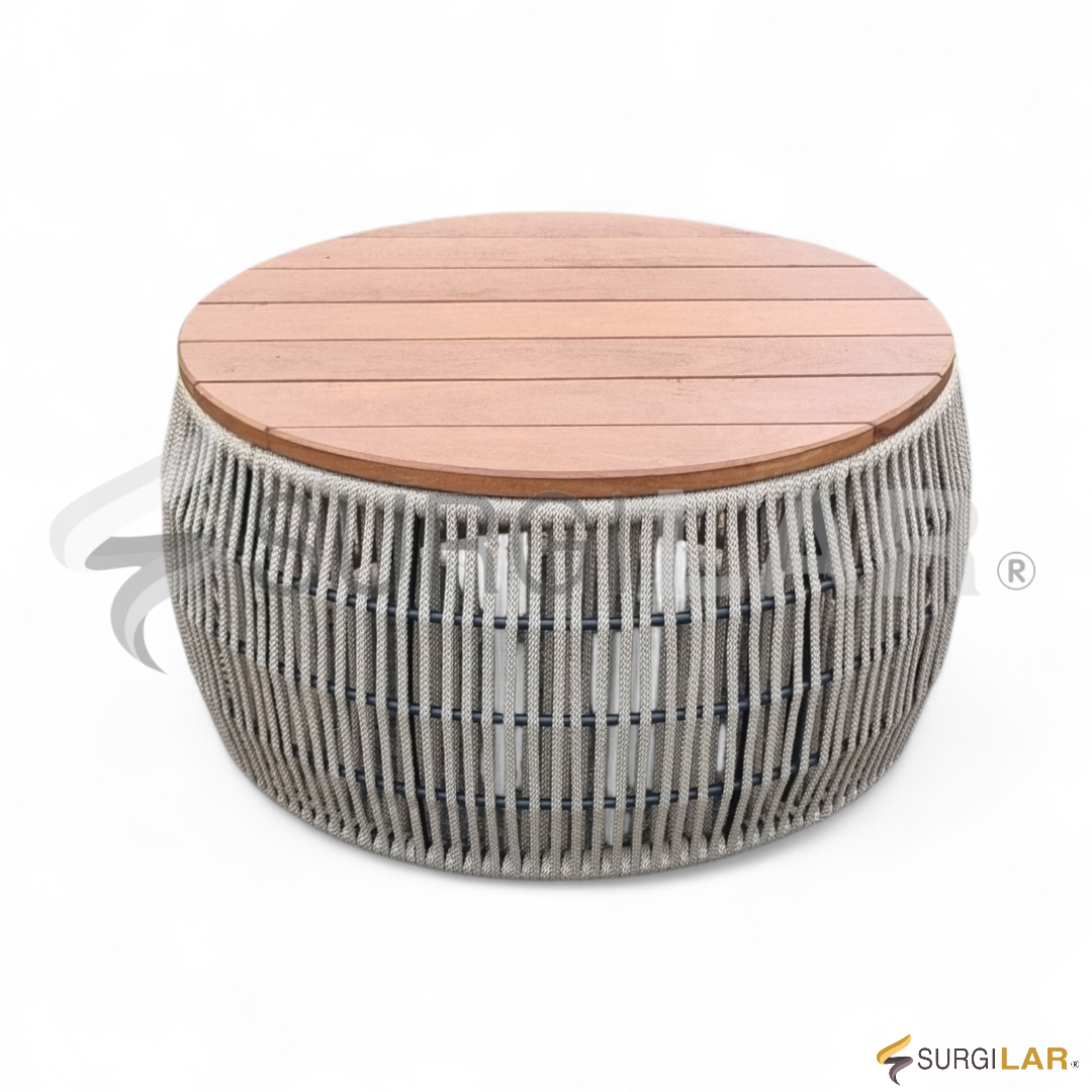 Com design elegante e proporções equilibradas, esta mesa central combina a leveza da corda náutica bege com a nobreza da madeira Cumaru em acabamento ripado. Com 70cm de diâmetro, oferece funcionalidade sem perder sofisticação, criando um visual harmônico que valoriza o encontro entre artesanato, resistência e estilo contemporâneo.